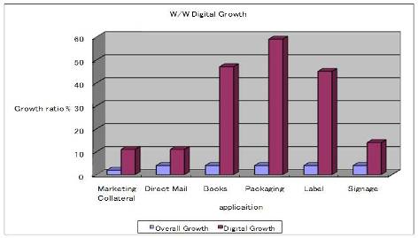 (全球市場傳統(tǒng)與數(shù)碼應(yīng)用增長率比較)