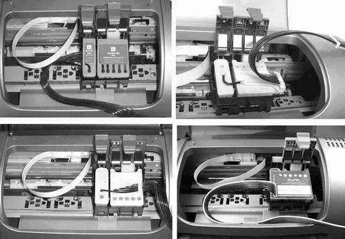 上面提到的連續(xù)供墨各品牌產(chǎn)品基本上都是“傻瓜式”的安裝辦法,按照說(shuō)明書(shū)操作即可。但是,很多初次接觸的用戶過(guò)不了這一關(guān),因?yàn)樗⒉皇窍胂蟮摹叭绨惭b墨盒一樣簡(jiǎn)單”,難點(diǎn)就在于墨盒芯片對(duì)位、排管的具體走向和固定。