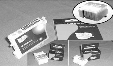 EPSON的打印機(jī)在墨盒上幾乎都裝有IC智能芯片,記錄墨水使用量,那么在打印機(jī)顯示墨盡以后就會(huì)停止工作,要使它工作就要將IC智能芯片恢復(fù)到初始狀態(tài)。目前恢復(fù)的辦法,一是使用恢復(fù)軟件,比如最有影響力的俄羅斯SSC Service Utility軟件,現(xiàn)已經(jīng)升級(jí)到了v3.71版本(下載網(wǎng)站:http://www.ssclg.com/epson.shtml)二是將墨盒從打印機(jī)中取出,用解碼器刷新。這兩種辦法都比較麻煩,原因是軟件并不支持所有打印機(jī),取出墨盒刷新則更不好,所以連續(xù)供墨的內(nèi)墨盒上就用到了另外一個(gè)辦法——直接裝入永久芯片。永久芯片體積大小和原廠墨盒上的IC智能芯片幾乎一樣,但是在恢復(fù)的方法上有區(qū)別:裝入永久芯片的打印機(jī)在面板指示燈閃動(dòng)或者電腦提示“墨盡”后,有的是采用關(guān)閉打印機(jī)電源幾分鐘后再次開(kāi)啟電源、有的是采用更換墨盒的 “形式主義”方法后去操作面板按鍵,而內(nèi)墨盒根本就不用取出來(lái);有的是拔掉打印機(jī)電源插頭,用斷電辦法就可以讓永久芯片恢復(fù),這個(gè)時(shí)候在電腦中查看剩余墨水就 “滿”了,打印機(jī)就可以繼續(xù)工作了。